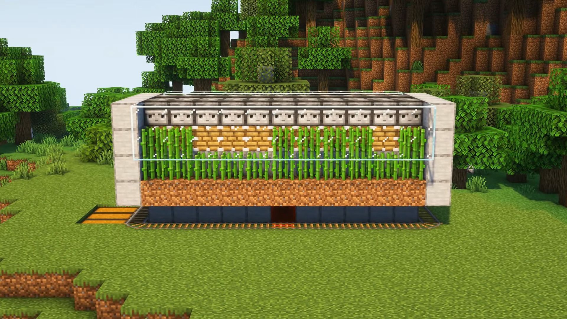 One of the most traditional designs uses observers that detect sugarcane crops that grow to max height, which will then activate the pistons below them and break the sugar cane without completely removing it. The cane can then be deposited in nearby storage to be used as players see fit.