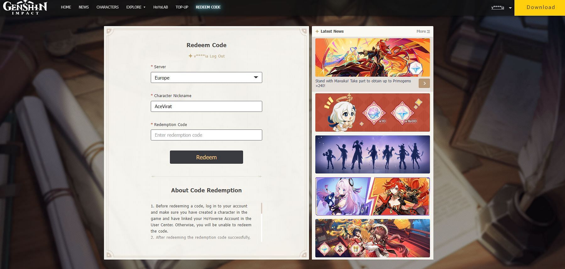 You can use the Genshin Impact 5.3 redeem codes via two methods. While one of them allows you to exchange them in-game, the other facilitates their use from any web browser. Here are the steps for both: