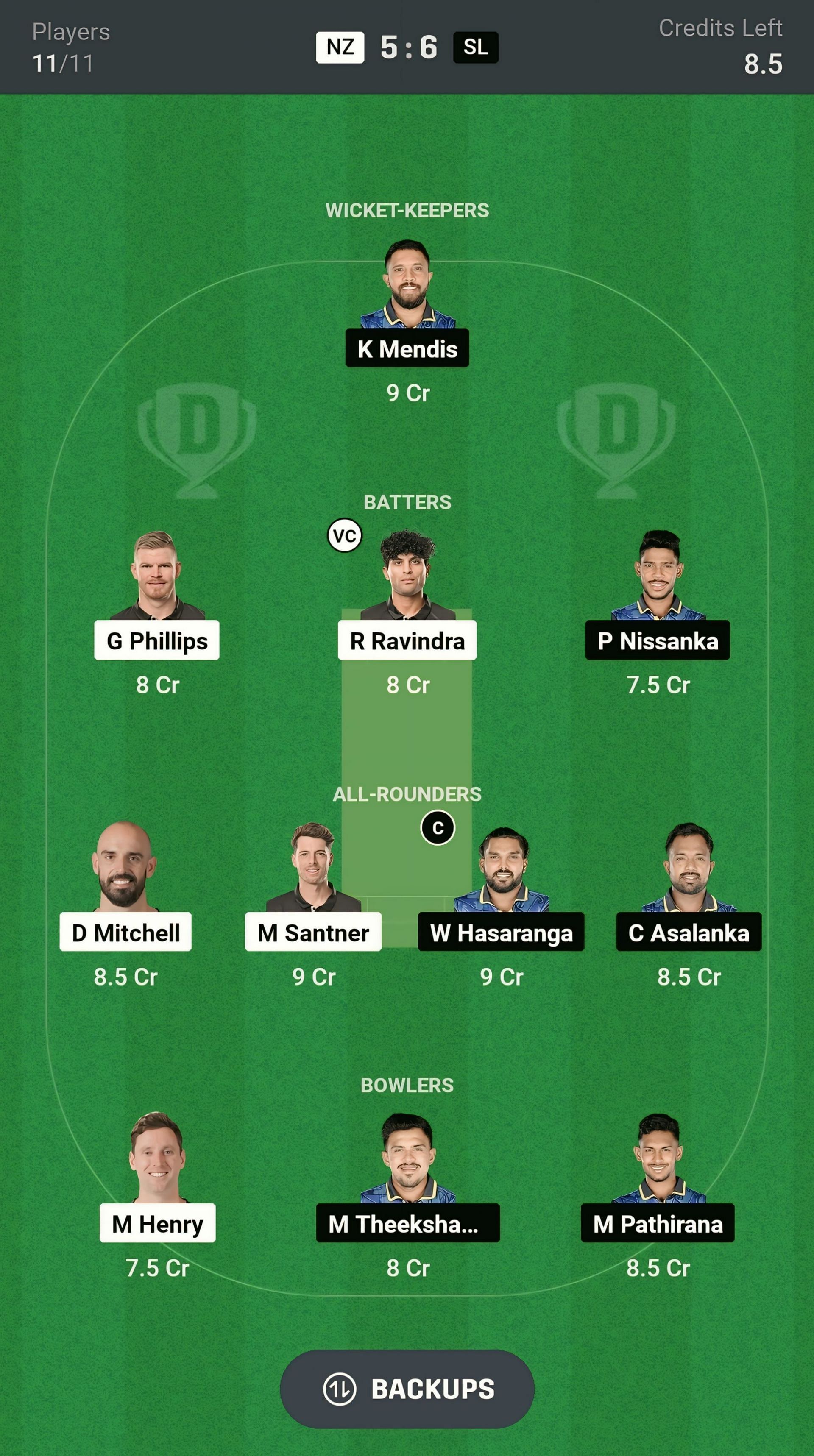 SL vs NZ match captain and vice-captain choices