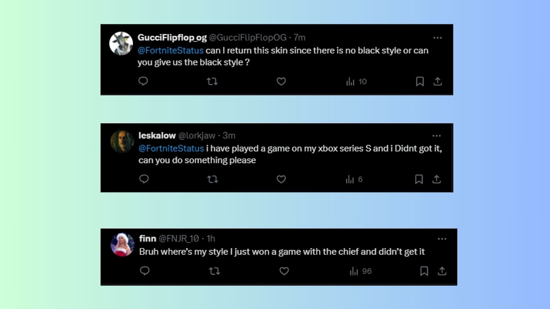 Meanwhile, other players talked about playing the game immediately after purchasing the outfit, and still not being rewarded with the Fortnite Master Chief Matte Black Style. Some players reported the issue minutes after the outfit made its way back to the Item Shop on December 23, 2024: