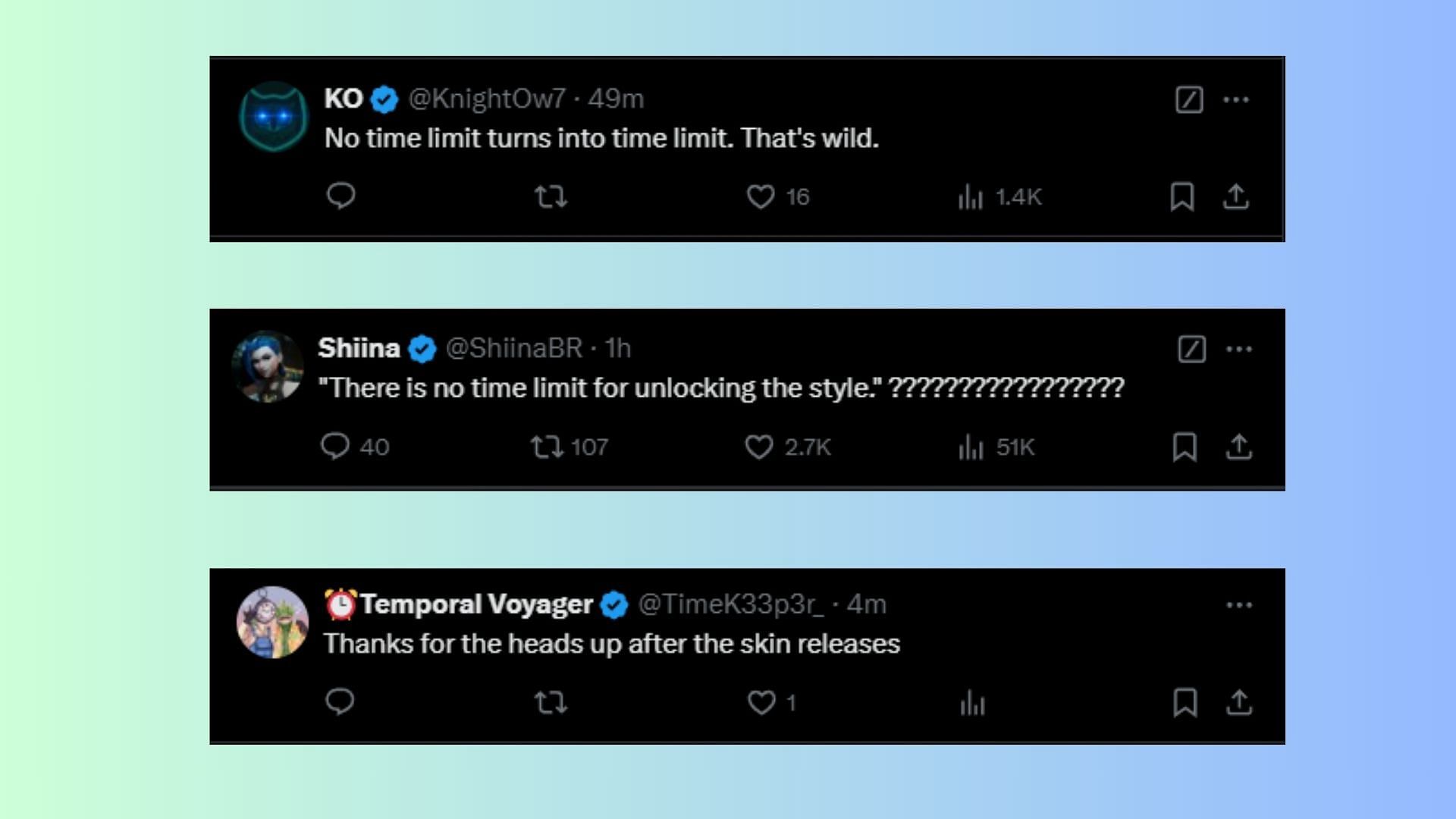 Players seemed visibly offended and disappointed, as a previous post from 2020 had stated that "There is no time limit for unlocking the style". @ThisIsITalk further emphasized this point: